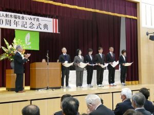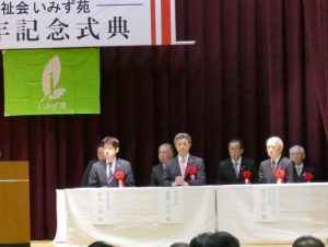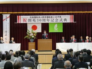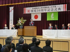 11月30日(日)、関係機関・団体、地域、保護者などから多くのご来賓をお迎えするとともに、多くの方々のご参加のもと、社会福祉法人射水福祉会いみず苑開苑30周年記念式典を当苑ひだまり体育館において開催しまた。