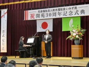記念式典後は、射水市ご出身でテノールオペラ歌手の澤武紀行様による30周年記念講演会「歌とトーク ふれあいコンサート」を行い、参加者は素晴らしい歌声に魅了されました。