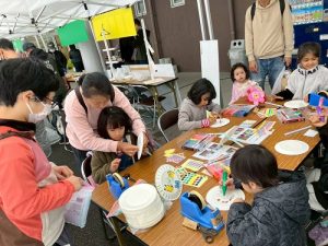 ちびっこコーナーではとても多くのお子さんに足を運んでいただけました。色々なゲームに夢中になったり、創作したり、とても楽しそうな表情が伺えました。