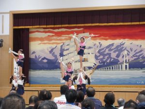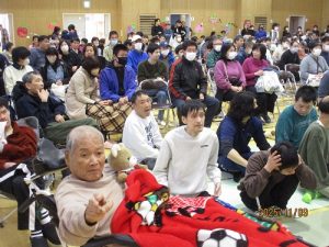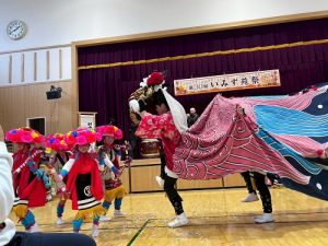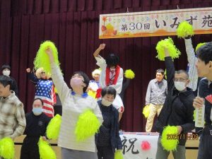 ステージでは息の合った素敵な演奏の「射北中学校・吹奏楽部」、とってもかわいいダンスの「七美幼稚園」、迫力のある「新湊獅子方若連中」、圧倒的なパフォーマンスで会場を感動に包んでくれた「富山チアリ―ディングチームPuppys」、毎回会場を沸かせてくれる「DANCE STUDIO DEEP」、利用者さんと職員による「いみず苑バンドザ・コリネッツ」、優しい音色のオカリナグループ「輪音」、華やか且つ勇壮な舞の「射水町獅子舞保存会」による獅子舞。そして大トリは「職員有志」のヤングマンで大盛況のうちに、ステージの幕を閉じました。